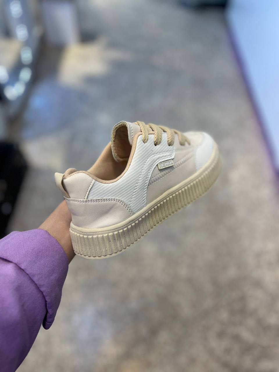 طراحی ساده و رنگ نود این کتونی باعث میشود بهراحتی با هر تیپی ست شود؛ از شلوار جین و مانتوی اسپرت گرفته تا ستهای مینیمال و شهری.