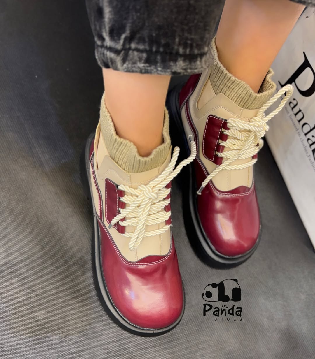 ترکیب رنگ کرم و زرشکی براق جلوهای لوکس و متفاوت به این بوت داده و آن را به گزینهای عالی برای استایلهای خیابانی و نیمهرسمی تبدیل کرده است. بندهای ضخیم تزئینی و ساق جورابی، طراحی مدرن و امروزی کفش را کامل میکنند و باعث میشوند این مدل بهراحتی با شلوار جین، مامفیت و استایلهای کژوال ست شود.