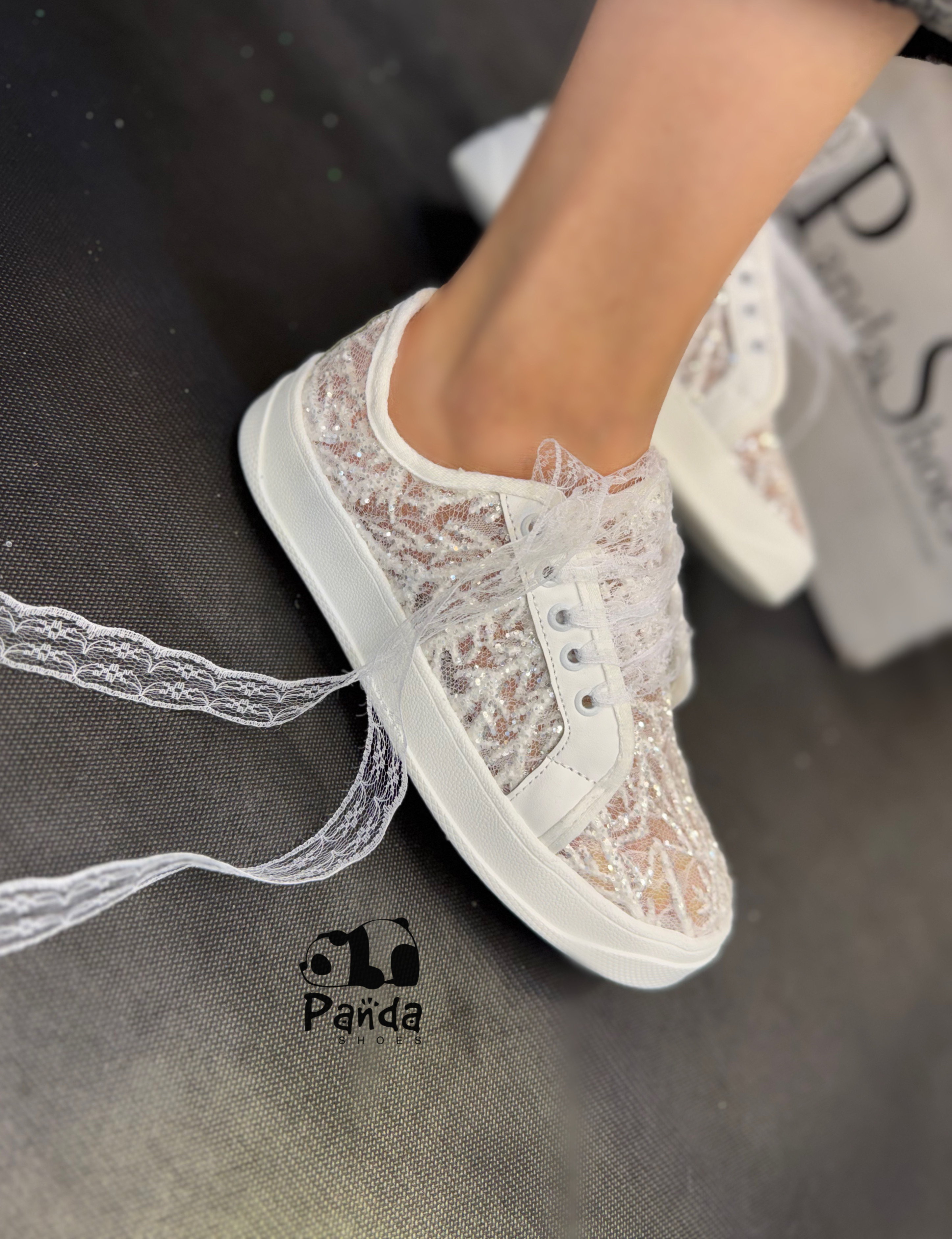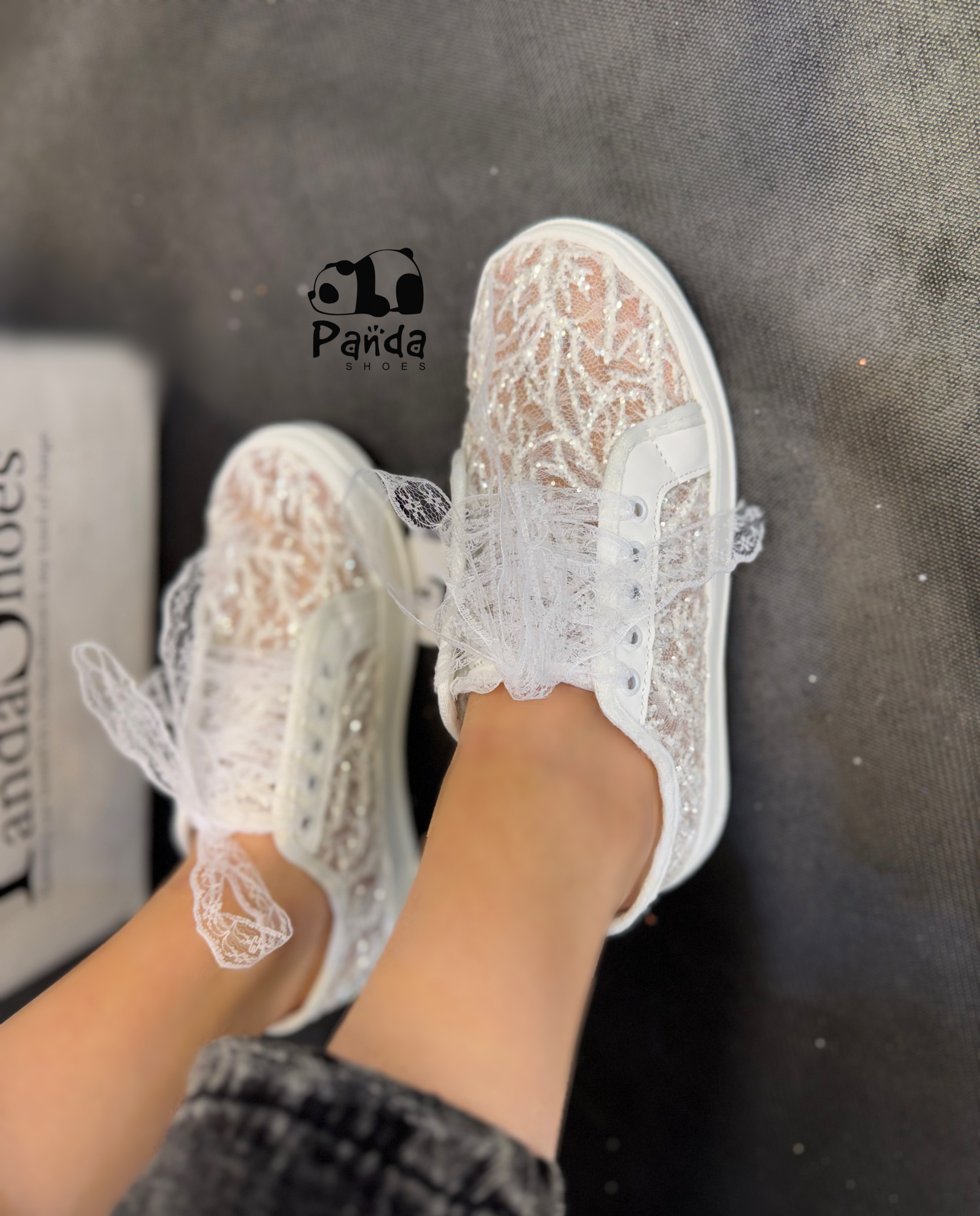 کتونی زنانه طرح کفش عروس توری | راحت، مجلسی و خاص کد 199