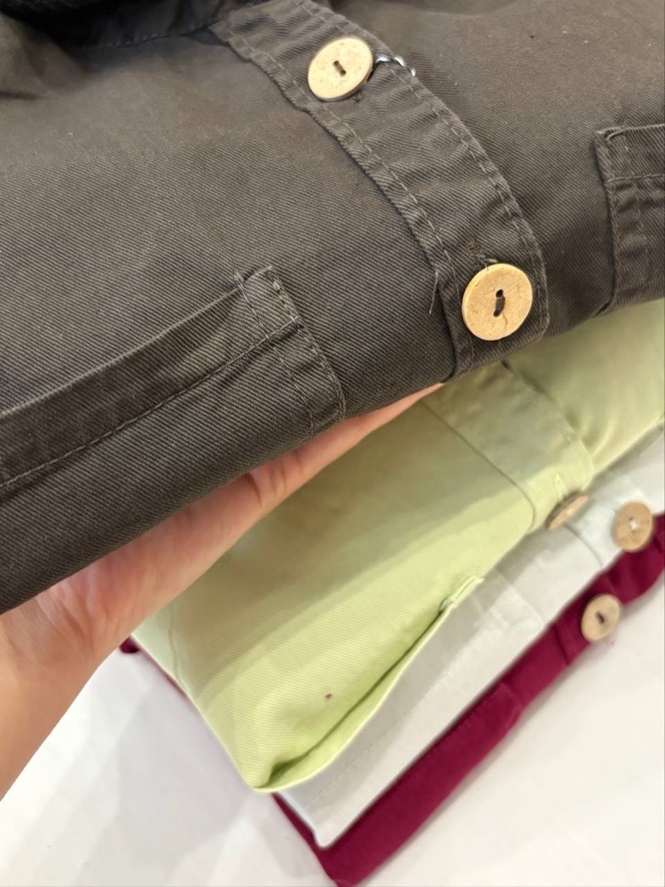 طراحی مینیمال با دکمههای چوبی خاص و جیبهای کاربردی، یه استایل اسپرت-کژوال جذاب برات میسازه که هم برای روزمره عالیه هم برای دورهمی و سفر 🌤️👜