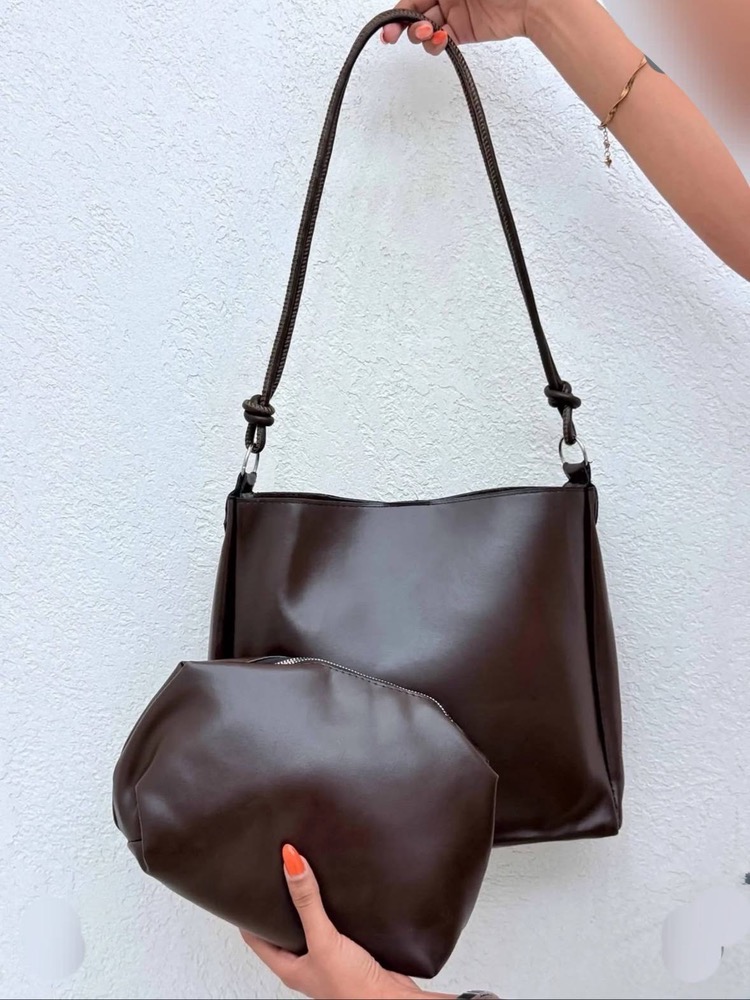 کیف دوشی زنانه مدل بند گرهای به همراه کیف داخلی ست