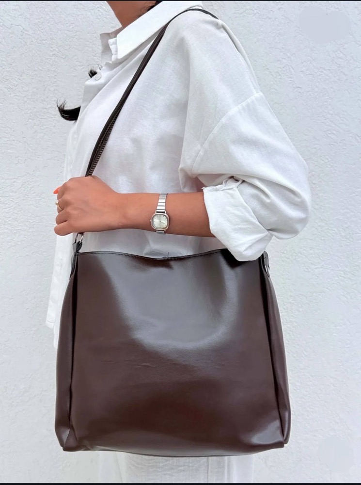 جنس بدنه نمایی مشابه چرم صاف و براق دارد که ظاهر لوکس و یکدستی ایجاد میکند 🤎 فرم مستطیلی نرم با ساختار نیمهمنعطف باعث میشود کیف هم ایستایی مناسبی داشته باشد و هم روی شانه خوشفرم قرار بگیرد.