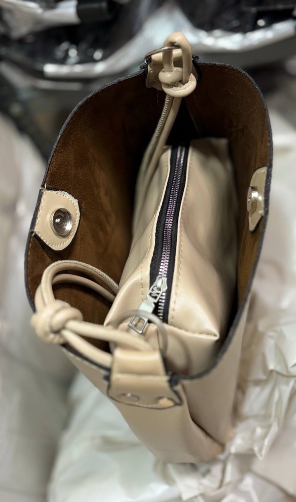 داخل کیف یک کیف جداگانه (پوش یا پوچ داخلی) قرار دارد که با زیپ بسته میشود. این کیف داخلی برای نگهداری وسایل کوچکتر مثل لوازم آرایش، کارتها یا وسایل شخصی بسیار کاربردی است و به نظمدهی بهتر کمک میکند.