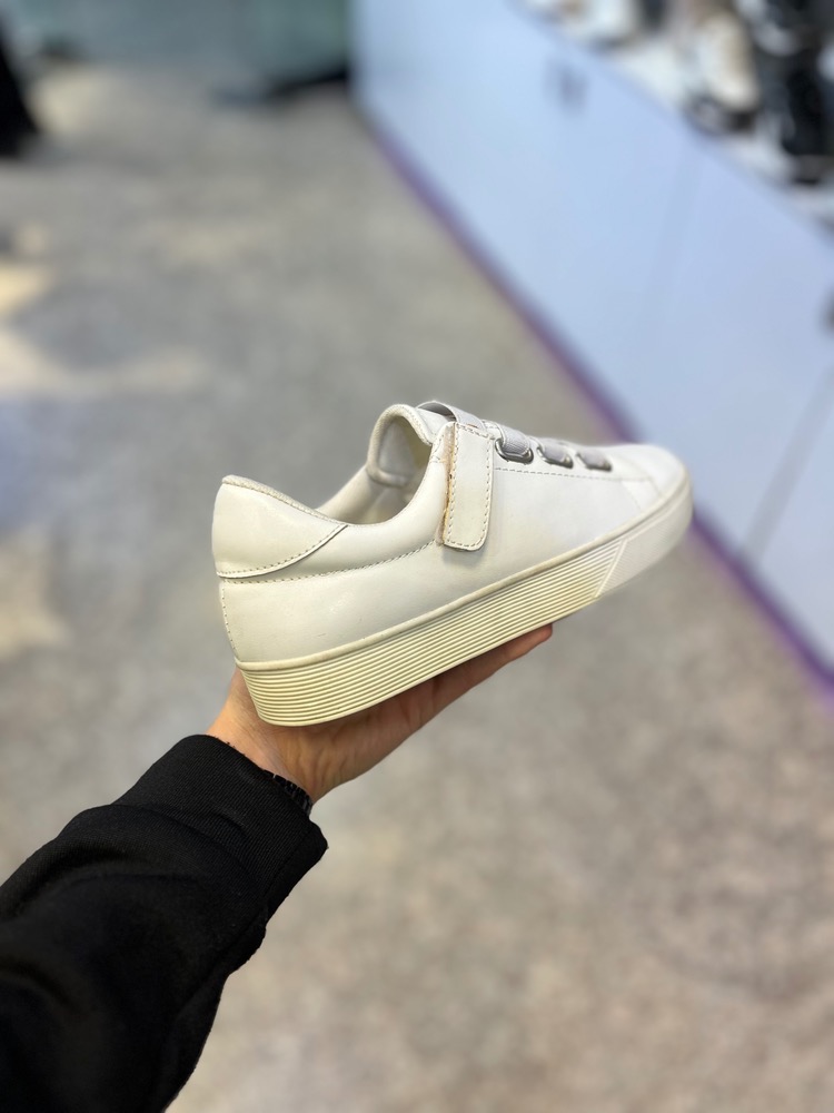 کتونی سفید مینیمال چسبی زنانه | مدل ساده و شیک | قالب استاندارد
