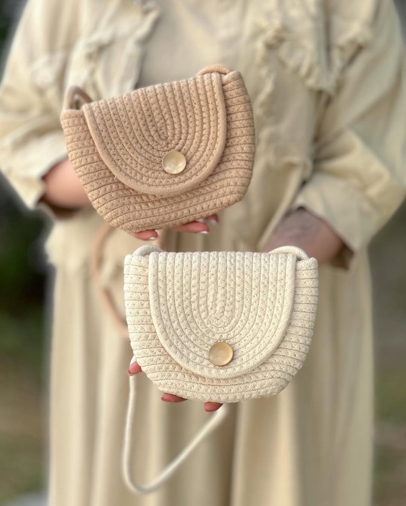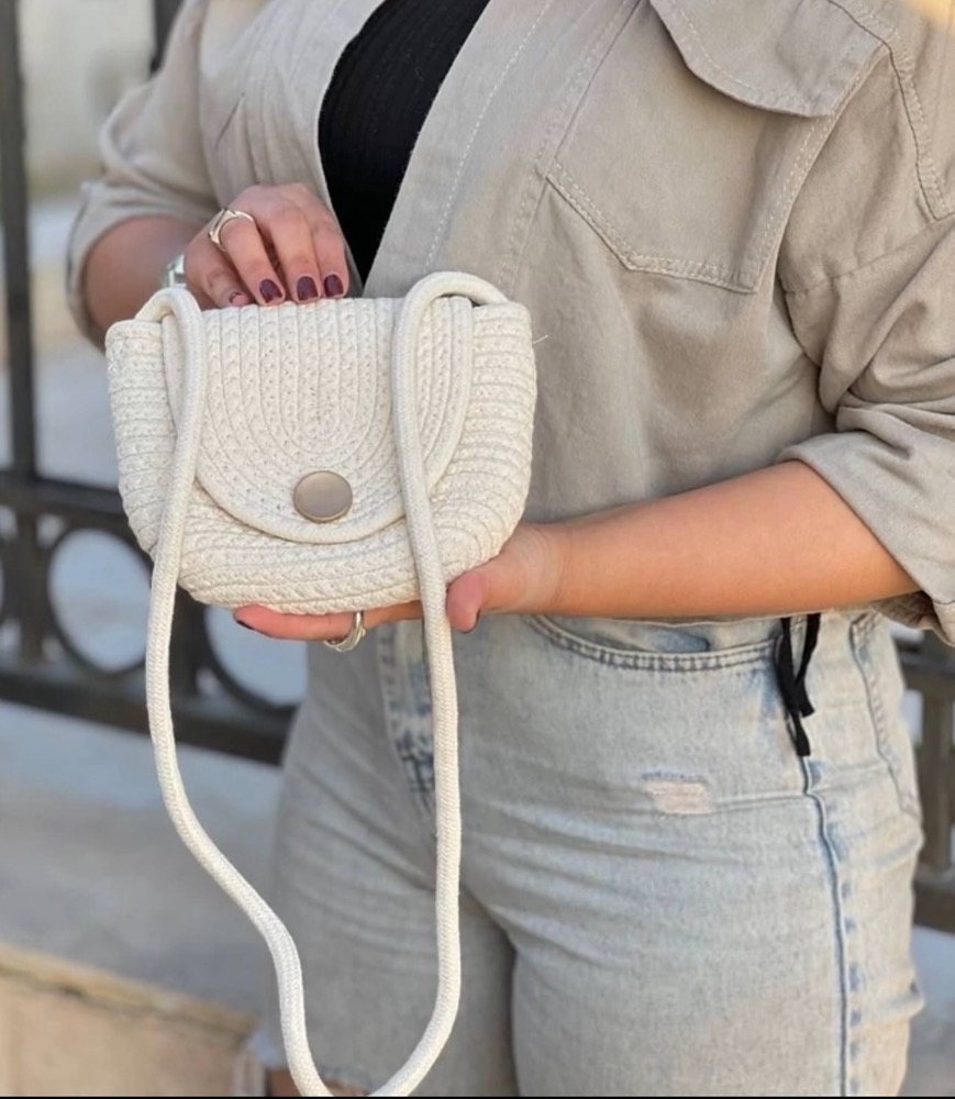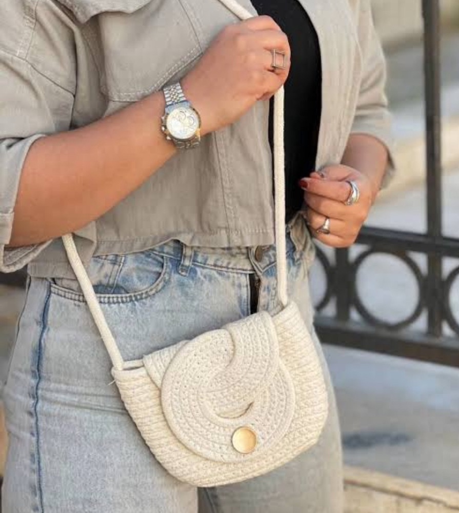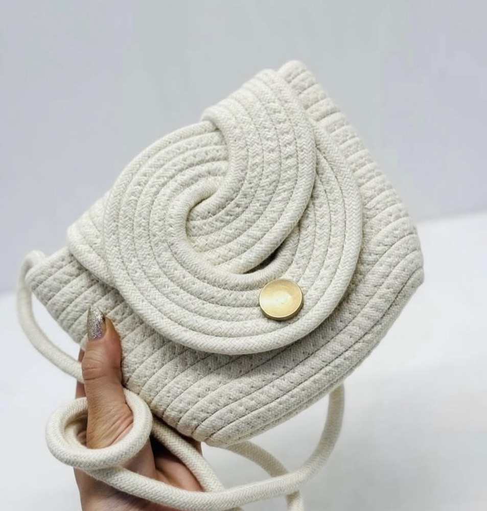 این کیف رودوشی با طراحی حصیری و فرم منحنیِ درب جلو، ظاهری متفاوت و بسیار چشمنواز دارد. بافت منظم و مارپیچی روی درب کیف، جلوهای خاص و هنری ایجاد کرده که آن را از مدلهای ساده بازار متمایز میکند.